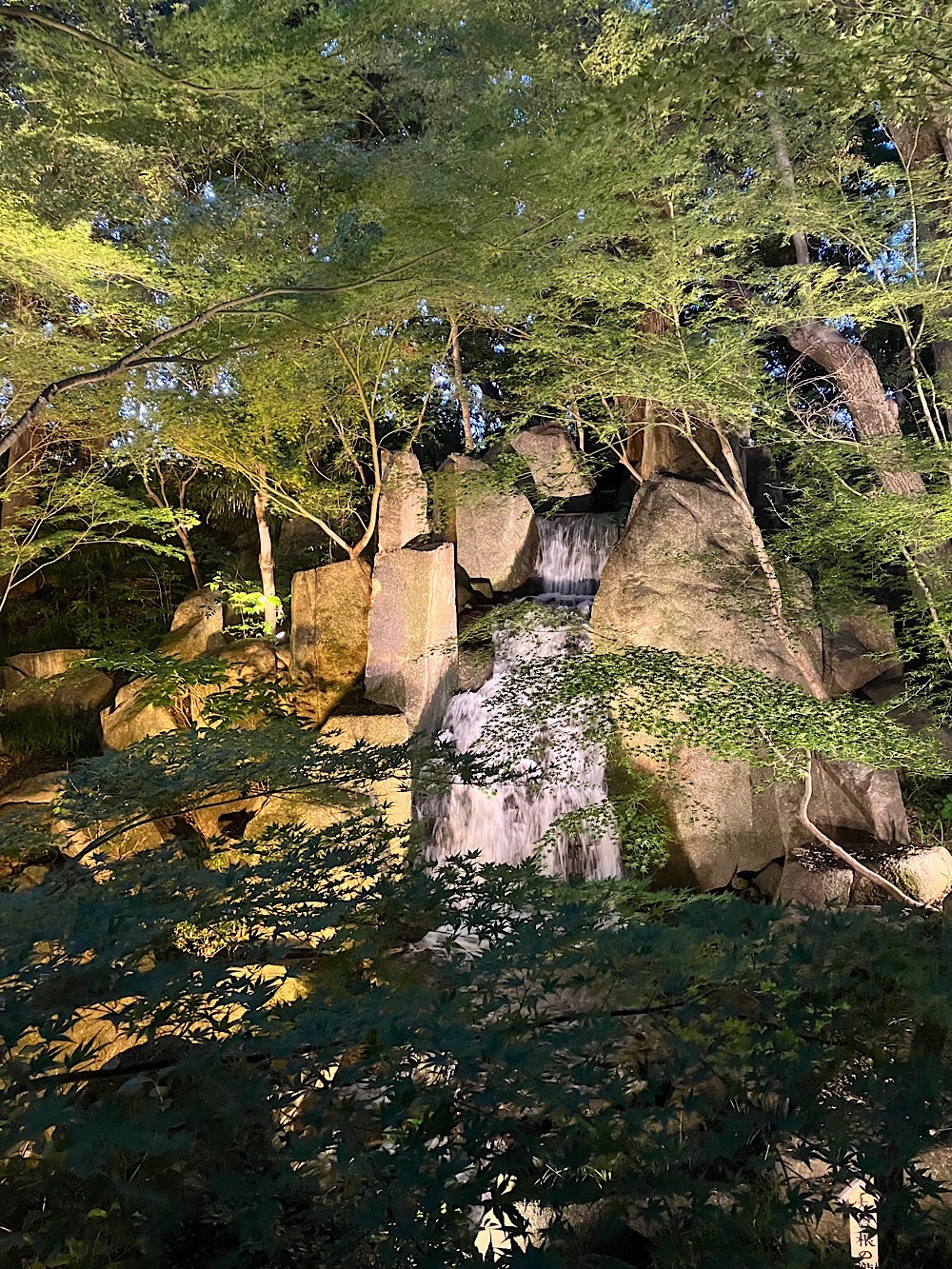 庭園のライトアップはいかに照明器具や光源を見せないようにするかが、美しい夜景を作り出すコツではないかと思います。キレイな自然の光景に機械が見えると、一気に興ざめすることがありますよね。徳川園のライトアップはそれらに最大限気を使ったライトアップがされていたように感じました。