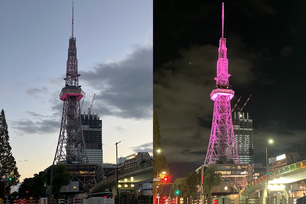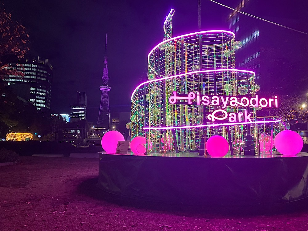 久屋大通のテレビ塔も夜には華やかにライトアップされています。