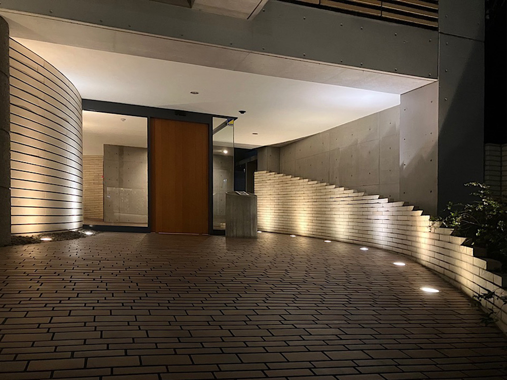 陰影のある材料を使った外壁などは光を当てることで昼間とは違う顔を見せることができます。