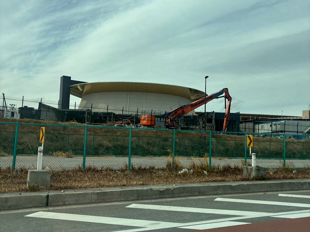 すでに解体工事が始まっており、あんなに賑やかだった会場には解体用のクレーンが立ち並び、壊された建物が見えました。 期間中はタクシーやバスばかりが走っていた万博道路も、工場のトラックばかり…。2000億超の費用をかけたお祭も半年でこんな姿になってしまうと、なんとも寂しい気持ちです。創ることの大変さを知っている人間にとっては残念な姿を見てしまったという印象です。